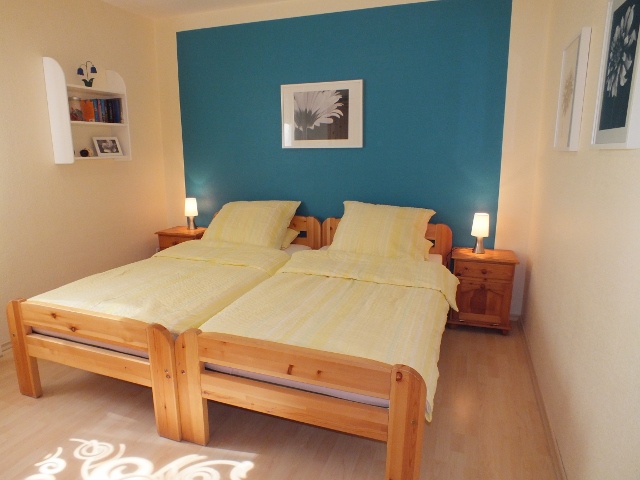 Schlafzimmer mit 2 Betten (jeweils 100 x 200).